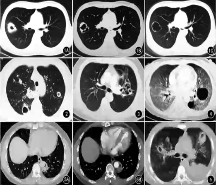 ❖ 除空洞外,肺部可见多发病变(斑片、结节等)