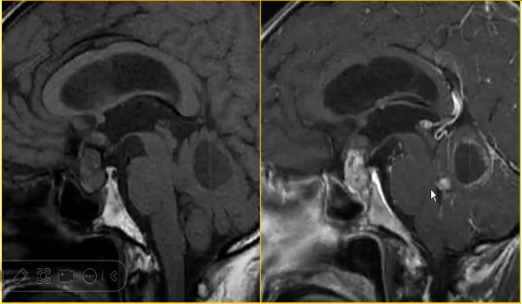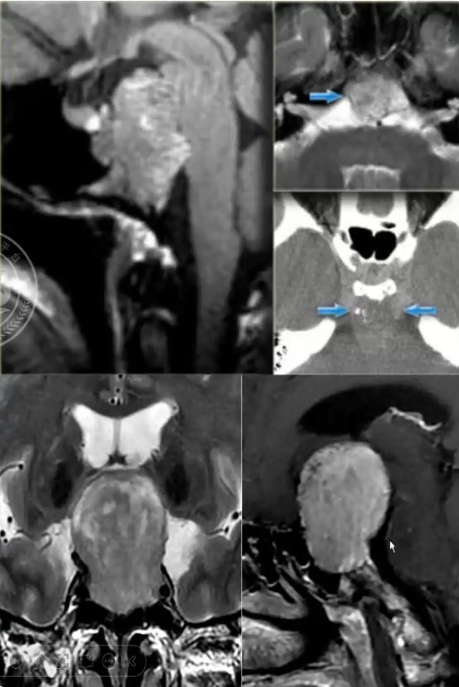 √ 鞍区转移性肿瘤,较少见(1%),鞍上下同时存在,垂体破坏性改变,其它区域常合并转移病灶