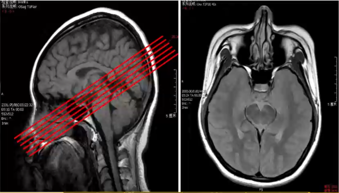 经蝶手术入路评价:切层平行于鼻蝶线,范围包括蝶窦和蝶鞍区