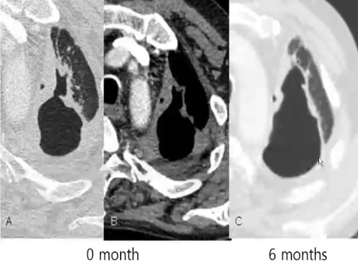 √注意:单纯空洞大小变化与临床改善关系不大(空洞周围肺纤维化可造成结构扭曲、牵拉性支气管扩张等)