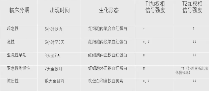 发生于不同时期的丘脑血肿所表现出的信号强度不同