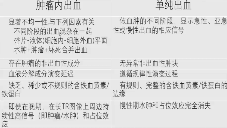 肿瘤内出血和单纯颅内血肿的比较