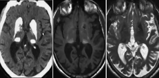 表现为广泛的深部灰质核团的对称性钙化,主要为苍白球,其余病变部位包括:壳核、尾状核、丘脑、小脑齿状核。